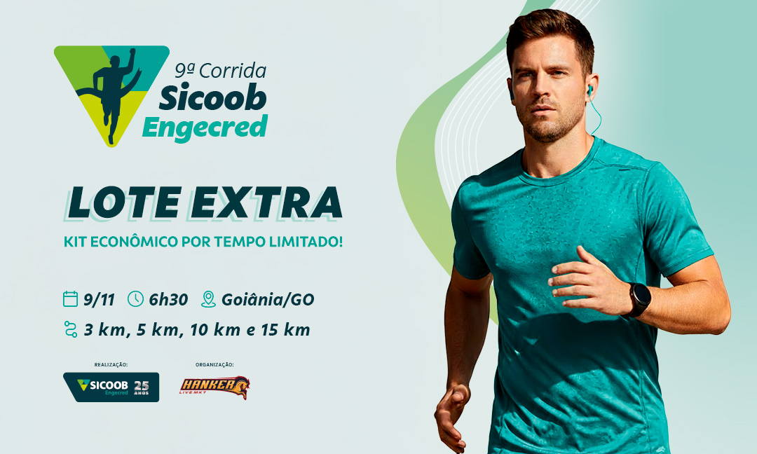 Devido à grande procura por inscrições, o Sicoob Engecred abriu um lote extra do kit econômico para a 9ª edição da sua tradicional corrida de rua, que será realizada no dia 9 de novembro, em Goiânia (GO). Mas atenção: as vagas são limitadas e podem se esgotar a qualquer momento.
