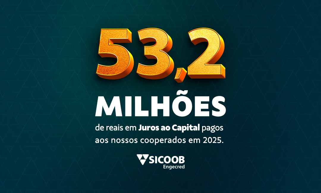O Sicoob Engecred creditou, no último dia 31, R$ 53.268.635,30 aos seus cooperados em juros ao capital, com remuneração de 100% da taxa Selic. O montante, referente ao exercício de 2025, reforça o propósito institucional de promover justiça financeira e prosperidade, além de evidenciar o terceiro princípio cooperativista: Participação Econômica.